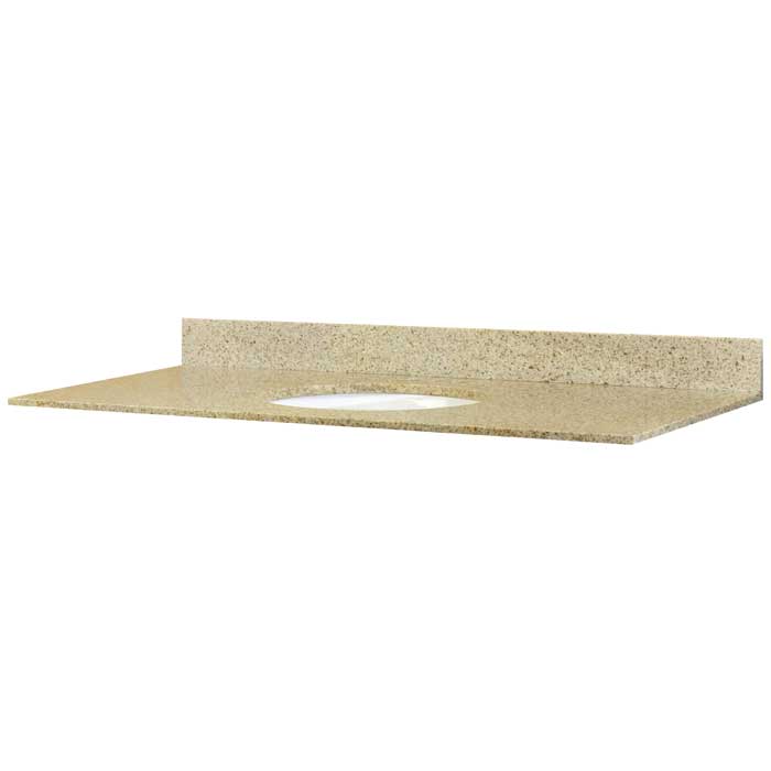 Smart Stone Solutions offers our customers hassle-free options for stocking marble & granite bathroom vanity tops. Our granite and marble vanity tops are 2 cm thick and come in six color options. Our vanity tops also feature eased edges, a durable polished surface, and they require no professional installation. Backsplashes are included with all vanity tops and coordinating side splashes are also available. Single pack vanity tops come with vitreous china bowls factory-mounted.